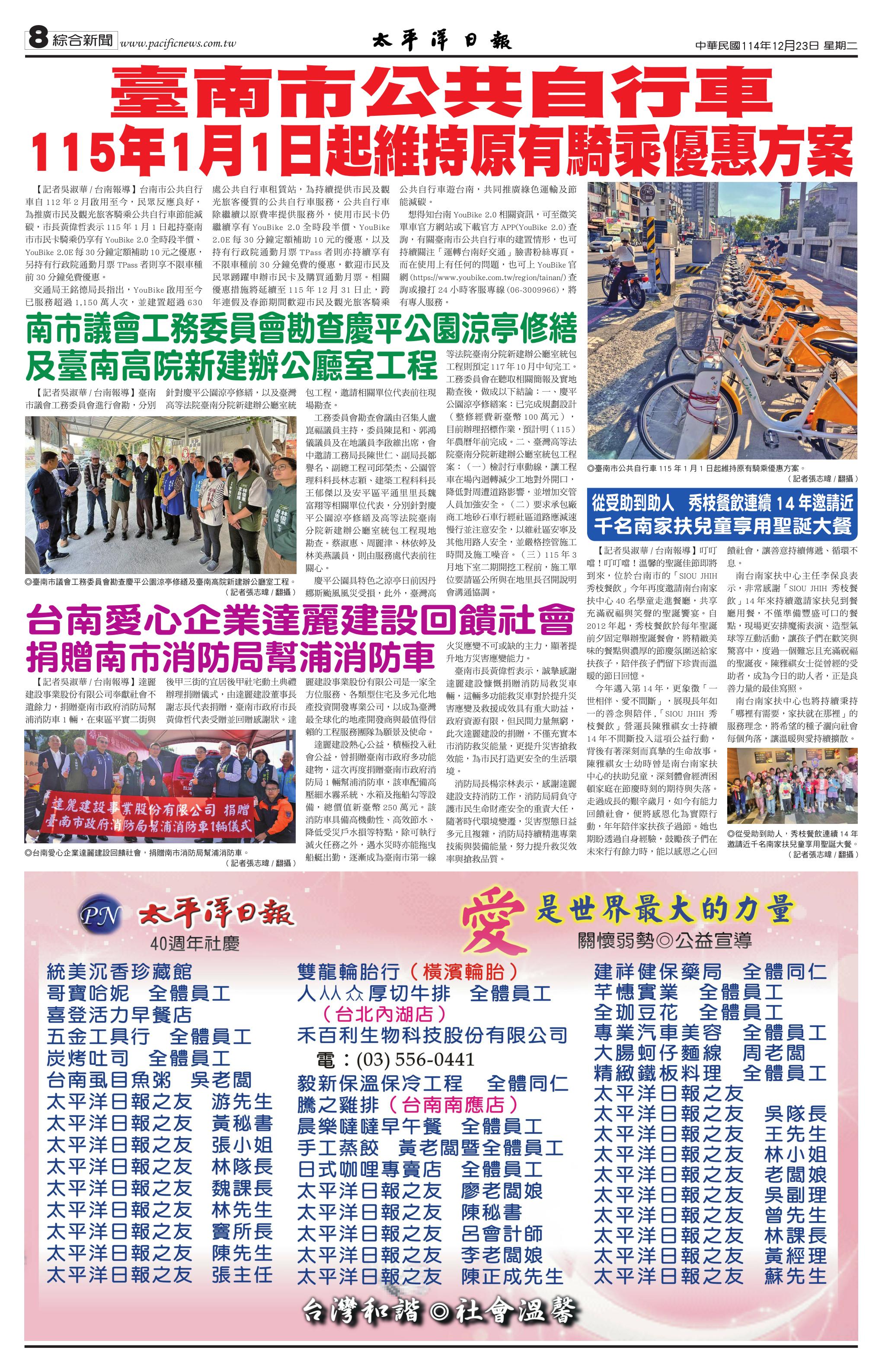 PACIFIC DAILY NEWS 2025, 12. 25 PM 13:20 Thursday 臺灣‧台北
