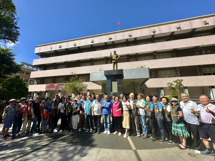 圖說:新北市長侯友宜與各級民代、里長及現場民眾於永和區公所前廣場合影。