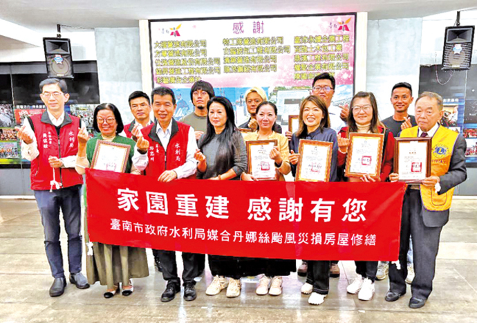 全力投入丹娜絲風災房屋修繕 南市水利局頒發感謝狀表揚協力廠商