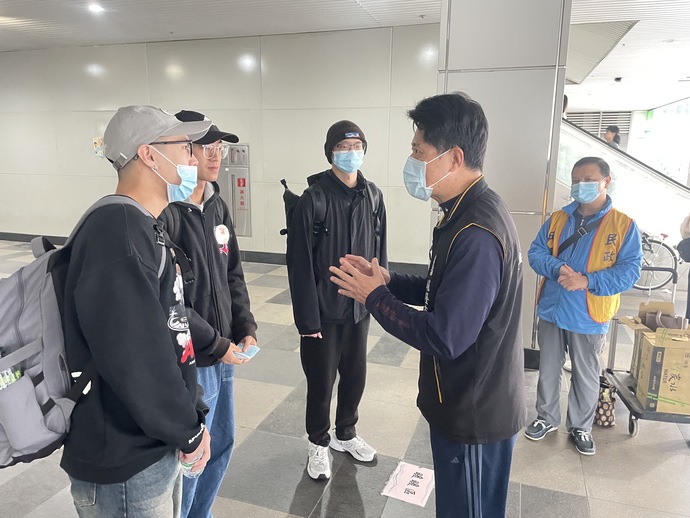 柯專員向現場家屬及役男表示,從入伍到退伍這段期間,役男是軍人服務站服務對象,有任何事情均可向各縣市軍人服務站尋求協助;其次提醒應注意事項,特別是如何反制詐騙,除了電話向單位查證外,也可向區公所、市政府及軍人服務站尋求協助,務求有效反制詐騙情事。