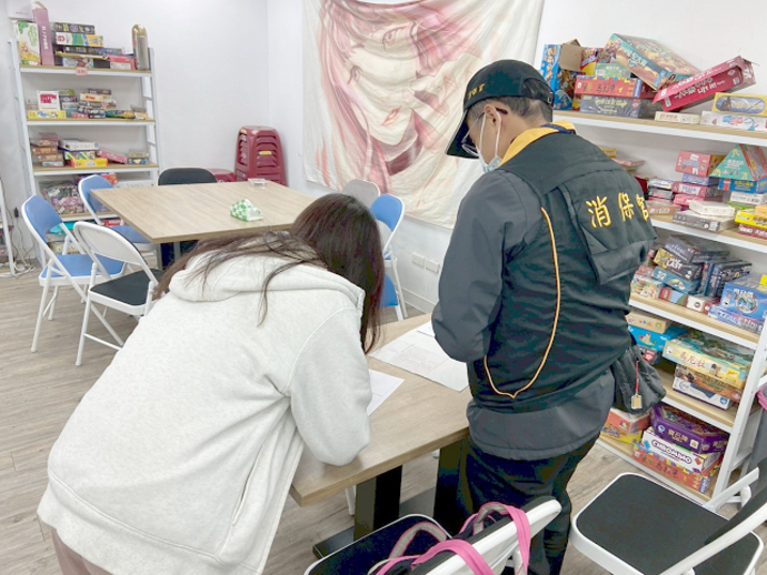 圖說:消費者保護官會同經濟發展局人員,針對轄內玩具及桌遊商品販售與租賃業者進行行政調查。