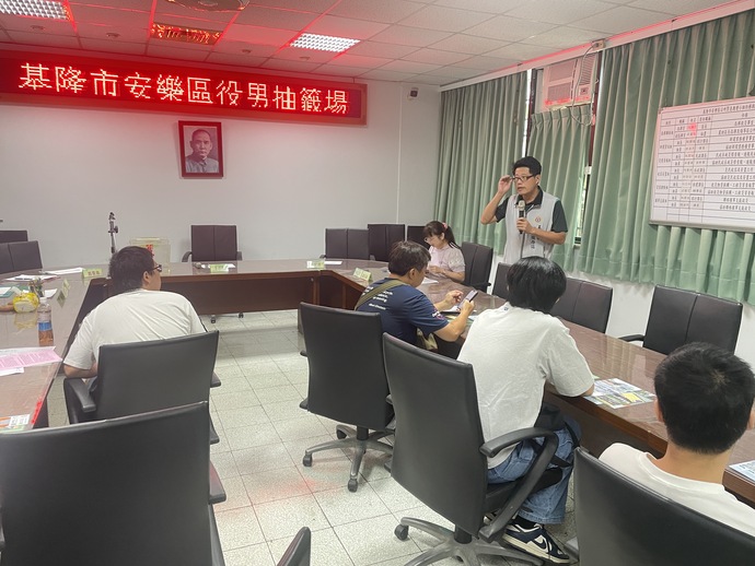 【記者林富貴/基隆報導】今日,基隆市安樂區實施役男抽籤,基隆市軍人服務站柯專員事亦到場,在抽籤前先實施說明。