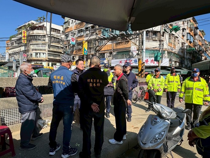 考量轄區百貨賣場、傳統市場春節前的採購年貨及往返車潮,樹林分局與台鐵、國道警、賣場、廟宇、傳統市場自治會、大型夜市等成立協調聯繫LINE群組,隨時掌握即時狀況外,轄區大型廟宇、百貨賣場均自聘交通維護人員,協助疏導車流;若出現購物或參拜廟宇車潮回堵時,除通報本分局外,業者立即啟動「滿場機制」管制停車場入口道路,並引導用路人前往其他停車場以疏解車潮。