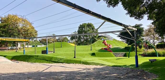 員山公園遊戲場於107年開放之初,連續例假日使用人數估計最高達每日7,000人次,使用至113年度時已歷時6年,滑草坡之人工草皮嚴重磨損、破舊、位移,急需修繕整補,若僅進行局部補強,將造成修補後的地墊如補丁般無法平順,草坪高低不平,使用者易遇顛簸及承受跌倒之風險。 本所以整體改善、減少地墊面積、減少後續維護成本為修繕計畫之規劃核心。