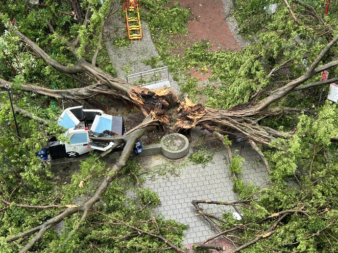【記者林富貴/新北市報導】新北市中和公園為中和區最大的綠地,樹木近千棵,中和區公所為讓民眾在公園內散步、運動及親子活動時,能享有更清新舒適的空氣與優美景觀,積極推動中和公園補植及修樹計畫,致力打造市民放鬆身心、親近自然的理想休憩場所。 近年來氣候變遷,天氣異常現象增加,颱風、豪雨等極端天氣事件頻繁發生,颱風生成時程亦持續延後,去(113)年10月底強颱康芮颱風侵襲,造成中和區五百多株樹木倒伏,及中和公園兩株直徑大於90公分的珍貴老樹倒塌。