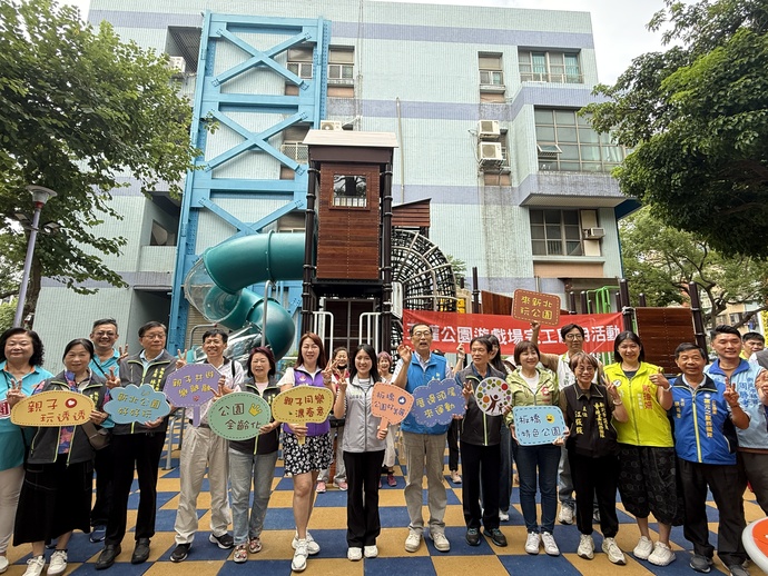 五權里黃國展里長說,五權公園位於住商混合的交通便捷地帶,附近民眾除了對公園綠地使用需求度高之外,孩童的遊樂需求也是鄰近居民所重視的生活機能需求,原有的遊戲場不但地墊老舊,設施玩法也欠缺創新,感謝區公所這次重新規劃翻新遊戲場,讓附近孩童有更好、更安全的遊憩空間。