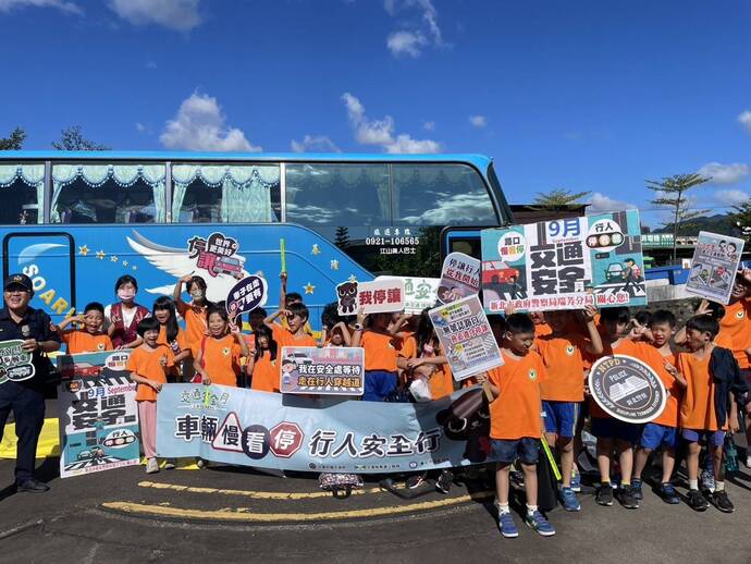 活動以「行人安全」為主題,規劃大型車視野死角體驗、無號誌路口安全及小綠人步行測速等互動遊戲,並搭配有獎徵答,讓學童在輕鬆氛圍中學習正確用路觀念。