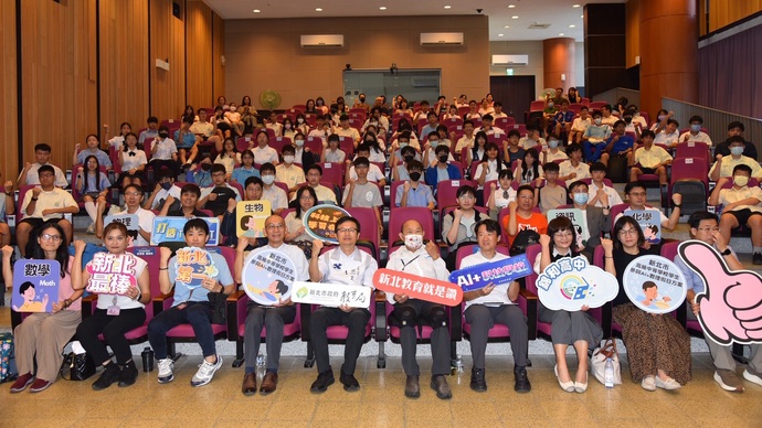 【記者林富貴/新北市報導】今(27)日,新北市教育局於海山高中舉辦第2屆「新北隊TeamNT」開學典禮,共甄選54位具備科技數理潛能的國中應屆畢業生展開跨校共學,利用假期每週六進行數學、物理、化學、生物及資訊等深廣課程,協助學生探索專長、精準銜接大學生涯選系,打造新北下一代AI科技新星。