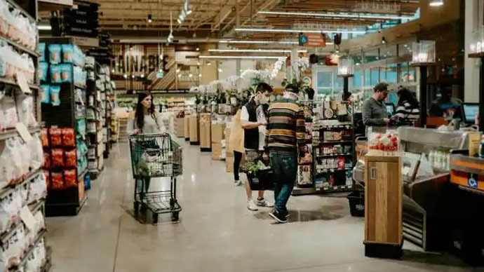 ↑圖說:美國家庭生活壓力陡增,圖為民眾在超市購物(供圖)。