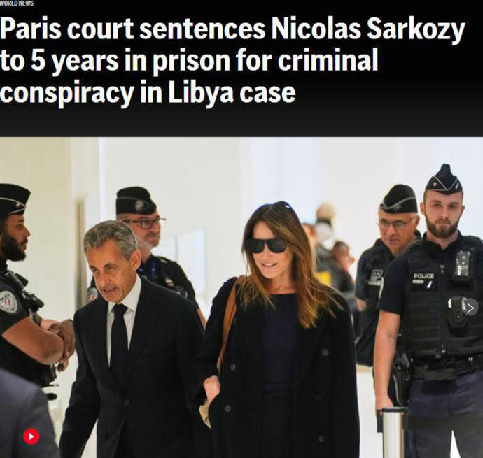 巴黎刑事法庭的法官裁定,薩科齊被判在2005年至2007年間犯有“共謀罪”,“允許其親信和政治支持者在2007年的總統競選中,要求利比亞政府提供資金支持”。
