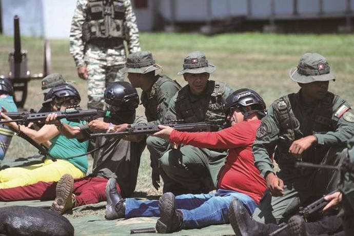 ↑圖說:委內瑞拉開展民兵訓練(資料圖)