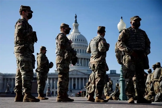 ↑圖說:美國國民警衛隊士兵進駐華盛頓特區(資料圖)