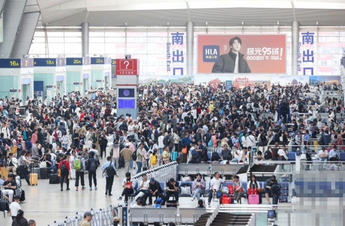 ↑圖說:10月7日,大量旅客在北京南站候車(供圖)