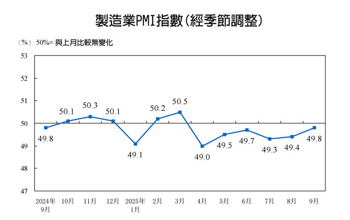↑圖說:9月製造業PMI為49.8%(供圖)